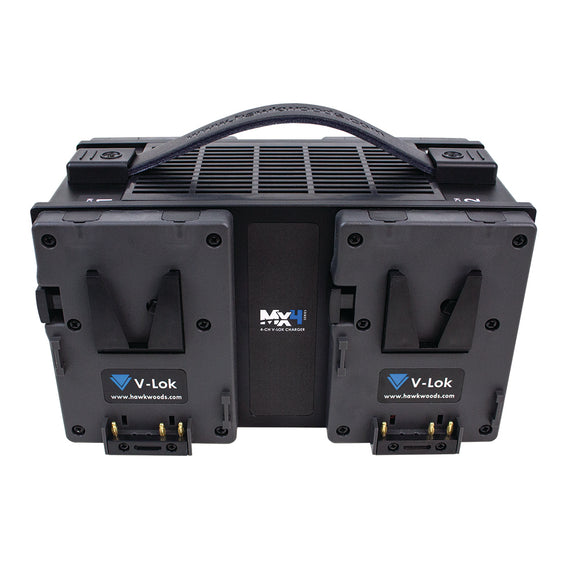 Hawk-Woods VL-MX4 (VLMX4) Mini-VL 3A Simultaneous Quad Channel Charger (3A). Hawk-Woods latest 4-channel V-Lok simultaneous charger offers a more sleek and compact look than their previous simultaneous model, we have stepped charging current down from 4A to 3A this is to suit MINI-VL as well as standard V-Mount batteries.
