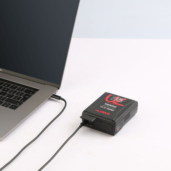 You can power laptop via USB-C by MINO-S70 battery on the filmset. Supports 5V 3.25A, 9V 3.25A, 12V 3.25A, 15V 3.25A and Max 20V 3.25A, BC1.2, PD2.0/3.0, QC2.0/3.0, FCP, SCP multiple protocols. (For Macbook Air/13, Macbook Pro 13/15/16, Huawei Matebook E/12/X13/XPRO, Thinkpad, HP, ASUS, Dell and almost all laptops with USB-C ports)