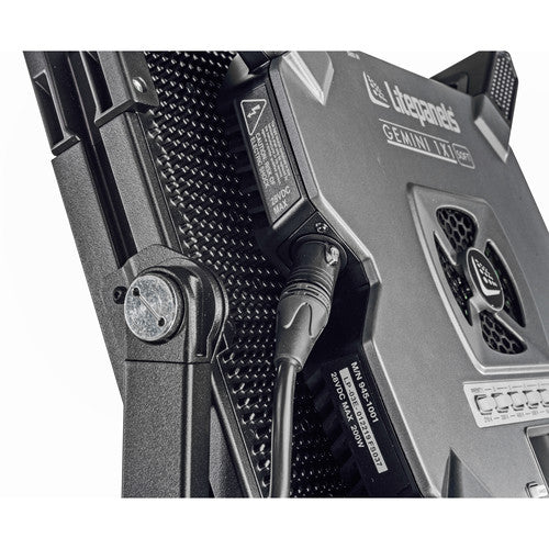 The Gemini has a number of convenience features, such as the ability to stack and gang several lights together with an optional yoke and hardware. You can also daisy-chain multiple lights together in Master/Slave mode, allowing a single designated "Master" light to control the others. This version of the Gemini ships with a UK power cable and a pole-operated yoke that allows pan and tilt adjustments from below overhead mounted lights.
