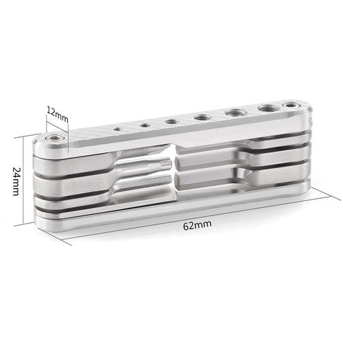 The AAK2213C Multi-Tool from SmallRig combines a variety of fold-out tools useful for videographers with threaded storage holes for keeping screws close to hand. Constructed with stainless steel tools and an aluminum casing, this multi-tool includes flat head and Phillips screwdrivers, a Torx T25 driver, and 2.5, 3, 4mm, and 3/16" Allen wrenches.