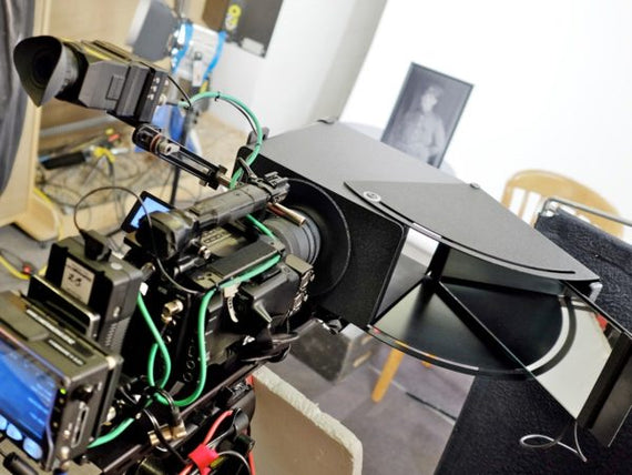 As a prompter, the Mark II supports iPads/tablets up to 7 x 10" and 3/8" thick (neither tablet nor prompting software is included). It features a 50/50 beamsplitter that allows the talent to see the text without it showing up on your image. Removing the iPad/tablet is where the design of the Mark II shines, as it allows your on-camera talent to look directly at the camera, yet see the face the interviewer behind the camera. You can also insert a picture or headline into your subject's eyeline without having them look off camera to see it.