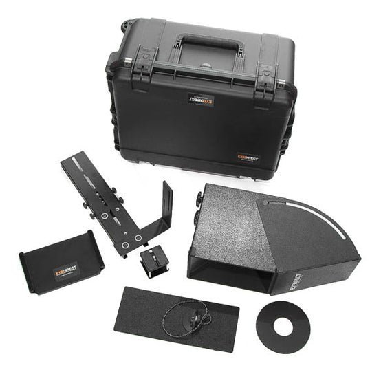 A flexible way of maintaining the eye contact with on-camera talent/interview subjects with your camera, the EyeDirect Mark II is more than just a teleprompter that feeds your on-camera subject lines to read, it also provides a way for your on-camera subject to see a variety of different views/images, all the while looking directly at your camera. Suitable for use with cameras from DSLR or mirrorless up to full-size camcorders or digital cinema cameras with large lenses.