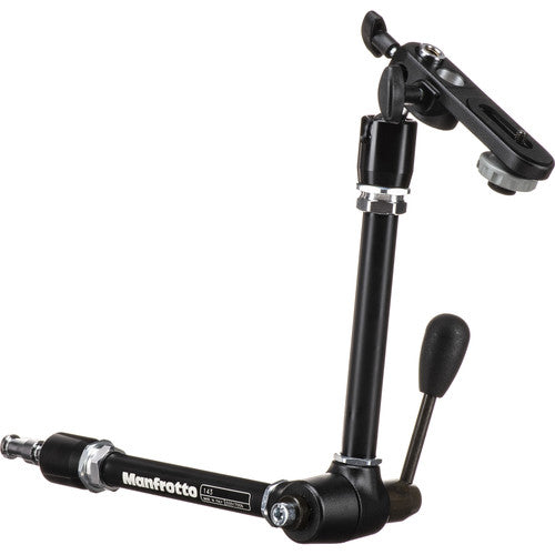 The Manfrotto 143A Magic Arm is a fully articulated arm with 90° pivotable and 360° rotatable ends, and an elbow that rotates 360°. The lever tightens and locks for precise positioning of a small light head or camera. The Magic Arm has 5/8" studs on ball joints at both ends with 3/8 and 1/4" female threads.