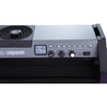 Flexibility and control are key to the creation of the Gemini 2x1 RGB LED Soft Panel with Standard Yoke and UK Power Cable from Litepanels. The aluminum-constructed, 25.0 x 6.5 x 12.5" fixture has 3 lighting modes. The CCT color temperature control has 6 factory presets in increments from 2700 to 6000K. There are also 6 presets for user-defined color temperature and plus/minus green control. The HSI Color mode allows you to adjust the hue, saturation, and intensity, while Gel mode permits your choice from a library of filters often used by image makers. A firmware update adds a Lighting Effects Mode that includes TV simulation, hue burst, paparazzi, strobe, fire, squares, fireworks, emergency lights, pulse and party lights. The light has a CRI/TLCI rating of 97 for daylight balance and 99 for tungsten balance, indicating a very accurate rendition of color. The Gemini is dimmable from 100 to 0% without flicker or color shift. Settings and features are displayed on the rear LCD screen.