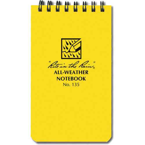 Standard notebooks are not designed to be waterproof, and their pages will bloat and disintegrate when they get wet. The black All-Weather Top-Spiral Pocket Notebook from Rite in the Rain features 50 spiral-bound sheets of water-resistant paper with a universal page pattern - this is a go-anywhere works-all-the-time journal in a convenient 3 x 5" format.