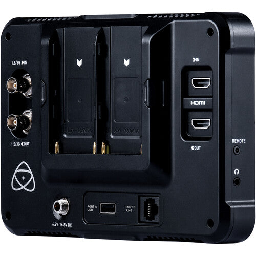 Add a bright, high-resolution monitor to view your 4K/2K footage from a cinema camera such as a Z CAM E2, Panasonic BGH1, or RED KOMODO with the Shinobi 7" 4K HDMI/SDI Monitor from Atomos. This 7" on-camera monitor features a 1920 x 1200 10-bit FRC IPS display with a brightness of 2200 cd/m², which makes it suitable for use in both exterior and interior conditions. This larger model improves on the original Shinobi as it adds 3G-SDI input and loop output up to 2K60, HDMI 2.0 input and loop output up to 4K60, signal cross conversion, a camera control port, dual L-series battery slots, and future possibilities with its built-in USB and RJ45 ports.