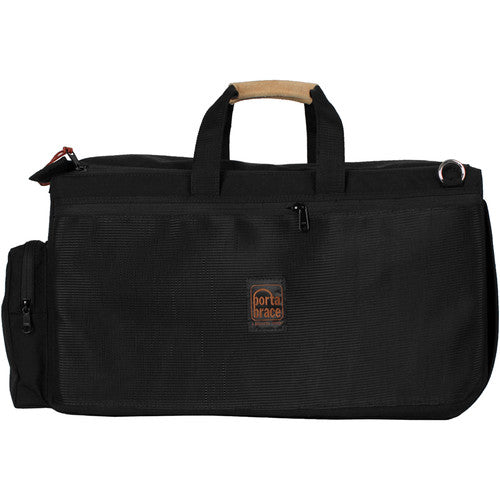 The main compartment is accessed via strong zippers and a touch-fastened front flap. The compartment is empty and can be configured to meet your needs using Porta Brace's included hanging pocket, camera tie-down cinch, and camcorder cradle. The case also comes with two padded lens cups, a stuff sack, a carabiner with an attached flashlight, and a handy white balance card. Two large accessory side pockets are accompanied by a front slip pocket for various quick-need items. The RIG-FS7XL comes with a convenient rear trolley sleeve that allows you to load this case on top of your optional luggage cart.