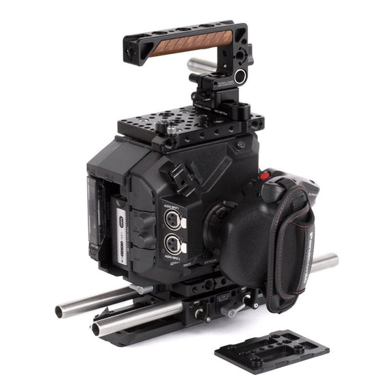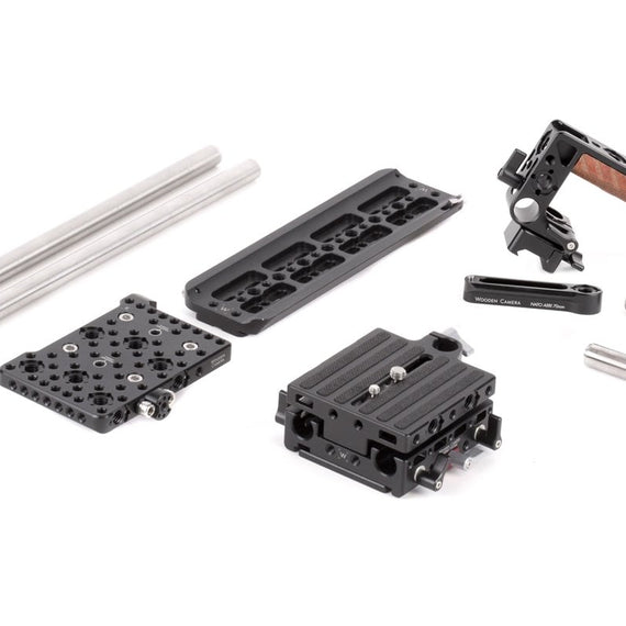 The Panasonic EVA1 Accessory Kit (Advanced) is a professional camera support package designed for the Panasonic EVA1 camera and utilizes our new Unified Baseplate System. The EVA1 accessory package includes: Top Plate (Panasonic EVA1), a top mounting camera cheeseplate for accessory attachment which also includes an LCD bracket attachment piece, the Unified Baseplate (Panasonic EVA1), a quick release, camera baseplate for holding the two 15mm Rod (12") at the correct lens height, and the NATO Handle Plus v2 Kit, a quick release, fully rotatable handle with 1/4-20 and 3/8-16 threaded holes can be used with the included 15mm Rod (3") to attach the original LCD unit. The Unified Baseplate includes an ARRI dovetail slot on the bottom which attaches to the the included Safety Dovetail.