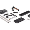 The Sony FS7 Unified Accessory Kit (Pro) is a professional camera support package designed for the Sony PXW-FS7 camera and utilizes our new Unified Baseplate System. The FS7 accessory package includes: Top Plate (FS7), a top mounting camera cheeseplate for accessory attachment, Unified Baseplate (Sony FS7), a camera baseplate for holding the two 15mm Rod (15") at the correct lens height, NATO Handle Plus V2 Kit, a quick release handle that attaches to the top plate, has a rotating top grip, multiple mounting points for accessories, integrated shoe mount, and a 15mm rod opening, UVF Mount (FS7, No Clamp) for holding EVFs & LCDs, the ARRI dovetail slot found on the bottom of the Unified Baseplate attaches to the included Safety Dovetail (12"), Rod Clamp (15mm LW) attaches the Battery Slide to the 15mm LW rods. The Battery Slide is an adjustable battery plate for attaching a V-Mount or Gold Mount plate to the camera.
