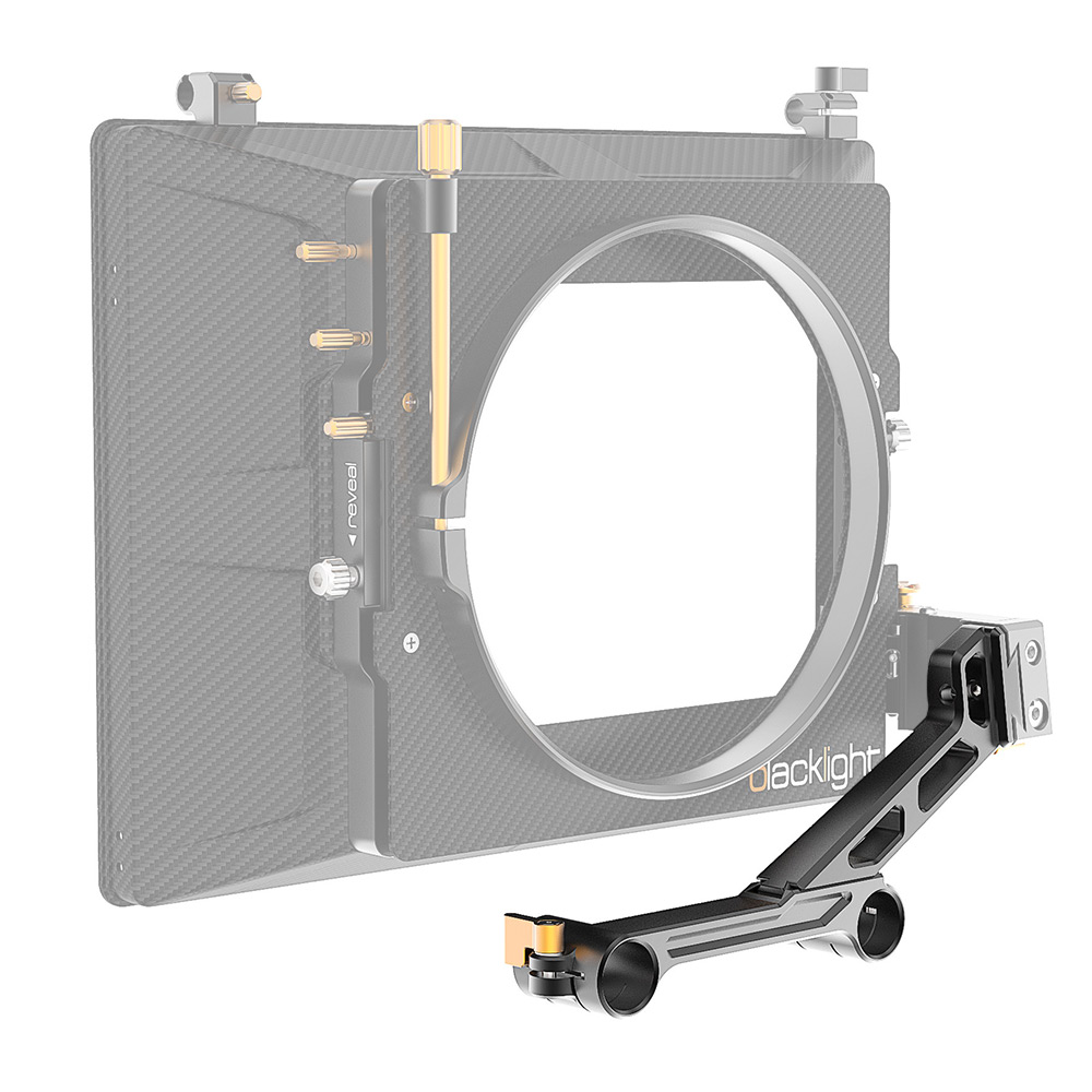 Add 19mm Studio swing away support to your Strummer DNA & Blacklight matte box for use with large lenses up to 162mm in diameter. This arm attaches directly to the swing away core.
