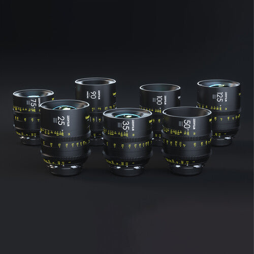 This DZOFilm VESPID 7-Lens Kit B is suitable for use on productions ranging from independent to studio films. The included 25, 35, 50, 75, 100, 125, and 90mm macro PL mount lenses cover full-frame sensors and project a 46.5mm image circle yet are small and lightweight, making them an excellent choice for handheld, gimbal, and drone work.