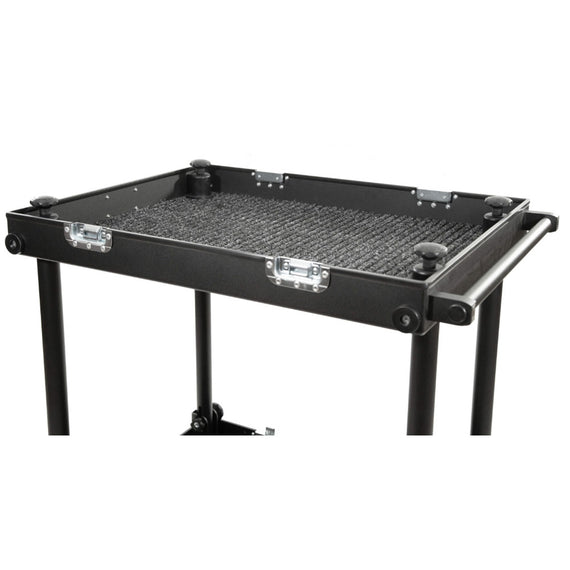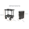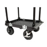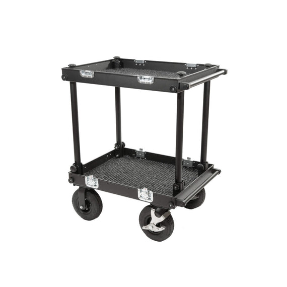 The SMARTONE MINI double deck cart can be use to transport equipment or as a sound department cart. We applied durable materials to face the harsh on set conditions, tires are made from 4-layer gum placed on strong steel rims equipped with 2 manual foot brakes with force regulation for secure and save routing on most of surfaces, aluminum structure is lightweight and sustained enough to hold up to 200 kilograms, no tools required to attach of remove each wheel or any part of the cart what saves your time. SMARTONE MINI is super easy to collapse and ready to use in less than 2 minutes. We developed a list of details which can improve the quality of usage like small transport wheels, props and deflects. Compact size allow the cart to transport easily all parts in one case. 220mm diameter wheels fits inside the collpased cart.