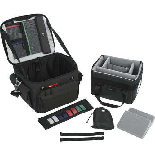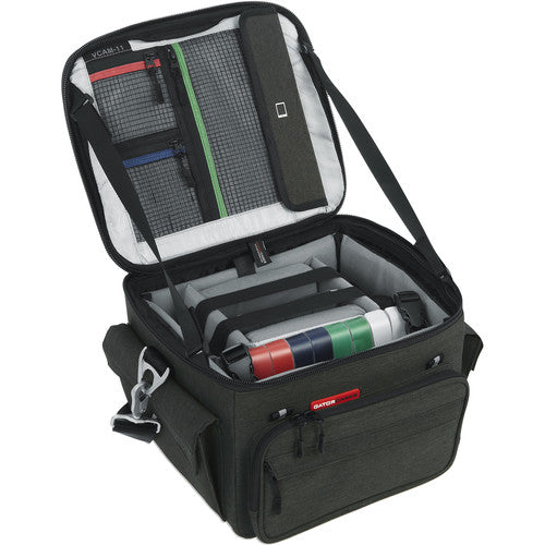Store, transport, and protect your DSLR or mirrorless camera, lenses, and related accessories in this black Creative Pro Bag for DSLR Camera Systems from Gator Cases. The bag features a padded removable insert with dividers, D-ring attachment loops, lid strap stays, and a clear ID window on top. Photographers will appreciate the clear mesh pockets under the lid and the reversible rain cover. Carry the bag with the handles or wear it with the padded shoulder strap.