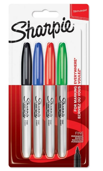 Sharpie - 4 Fine Tip Permanent Markers - Assorted Colours