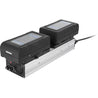 The Westcott 26V V-Mount Dual Bay Battery Charger features a metal housing and fan cooling, allowing it to simultaneously charge two Westcott 26V lithium-ion batteries in approximately 75 minutes. The charger integrates two V-mount battery plates for charging. However, it is only designed to be used to charge Westcott 26V lithium-ion batteries and should not be used with other batteries. Built-in LED indicators provide charging information.