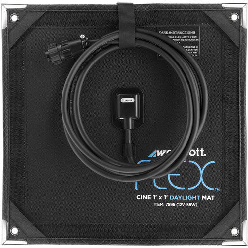 The daylight color temperature makes a good match when shooting exteriors, or interiors with daylight sources, while the high CRI and TLCI provides excellent color reproduction. The mat is capable of producing flicker-free output from 1 to 100% of its brightness when connected to a Flex Cine Wireless Dimmer (not included). For the mat to function you will need to connect it to a Flex Cine Wireless Dimmer, and power it with a 14.8V V-mount battery or power supply.